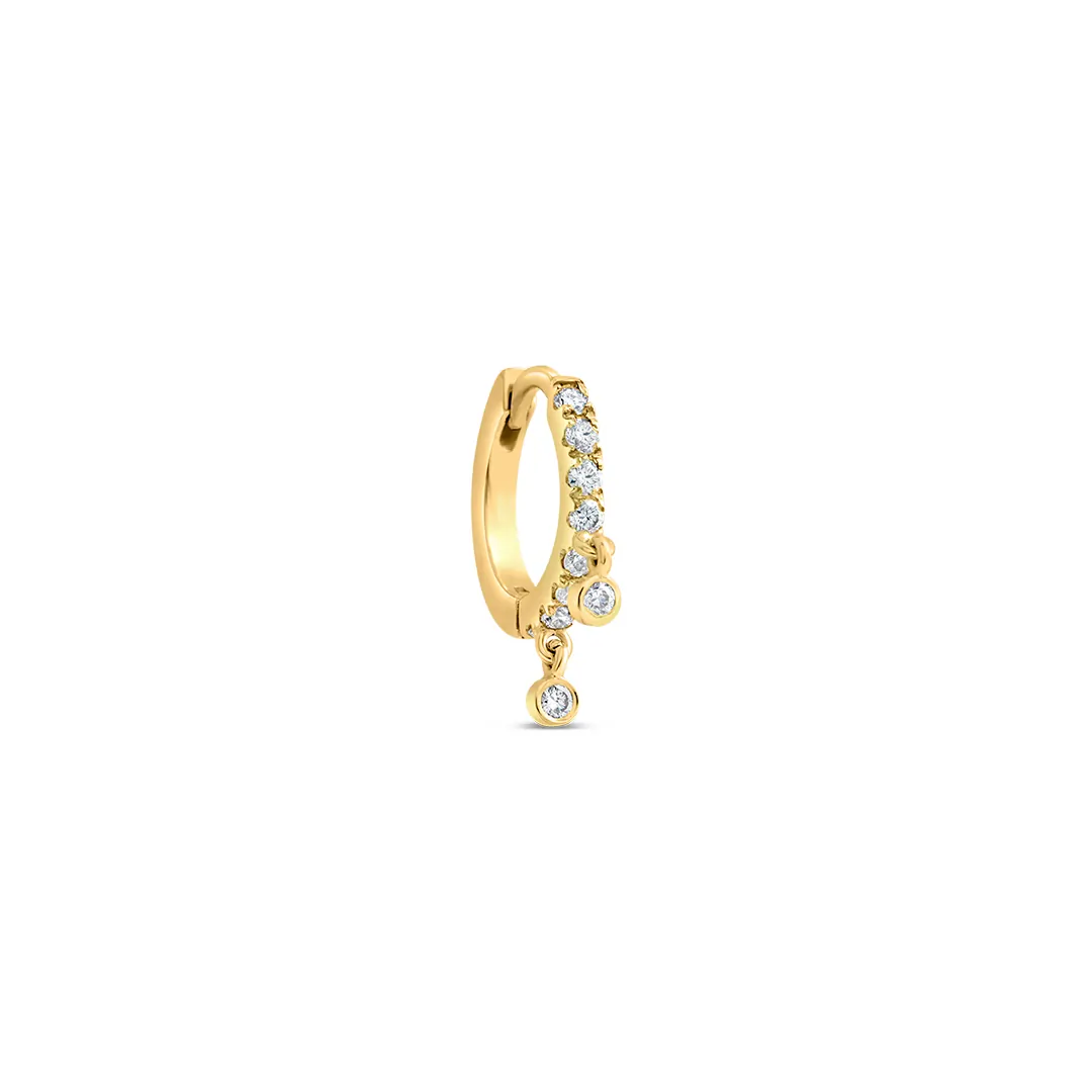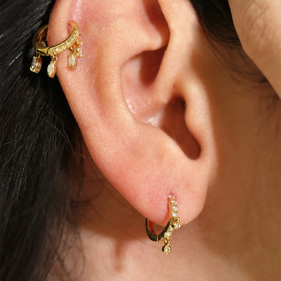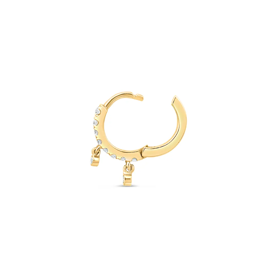 Make a refined statement with this diamond ring earring featuring two elegantly dangling diamonds for added movement and brilliance. The open gold ring design creates a modern, airy look, while the suspended diamonds catch the light with every turn. Designed for those who love subtle luxury with a twist, this piece is both graceful and bold. Perfect for evening wear or elevating your everyday style, it’s a standout accessory with timeless appeal.